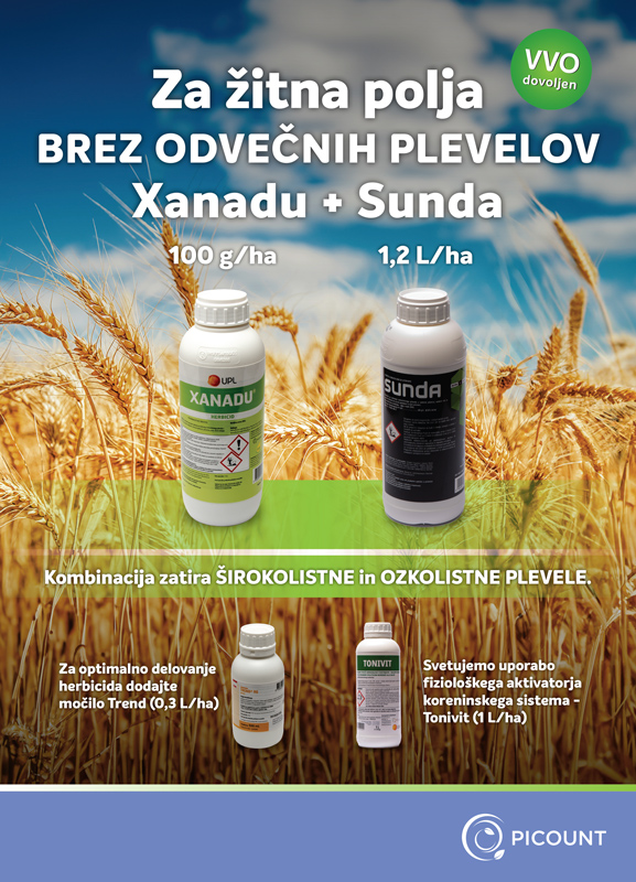 Za žitna polja brez odvečnih plevelov, uporabite kombinacijo sredstev XANADU (100 g/ha) in SUNDA (1,2 L/ha). Kombinacija zatira tako širokolistne kot ozkolistne plevele.
